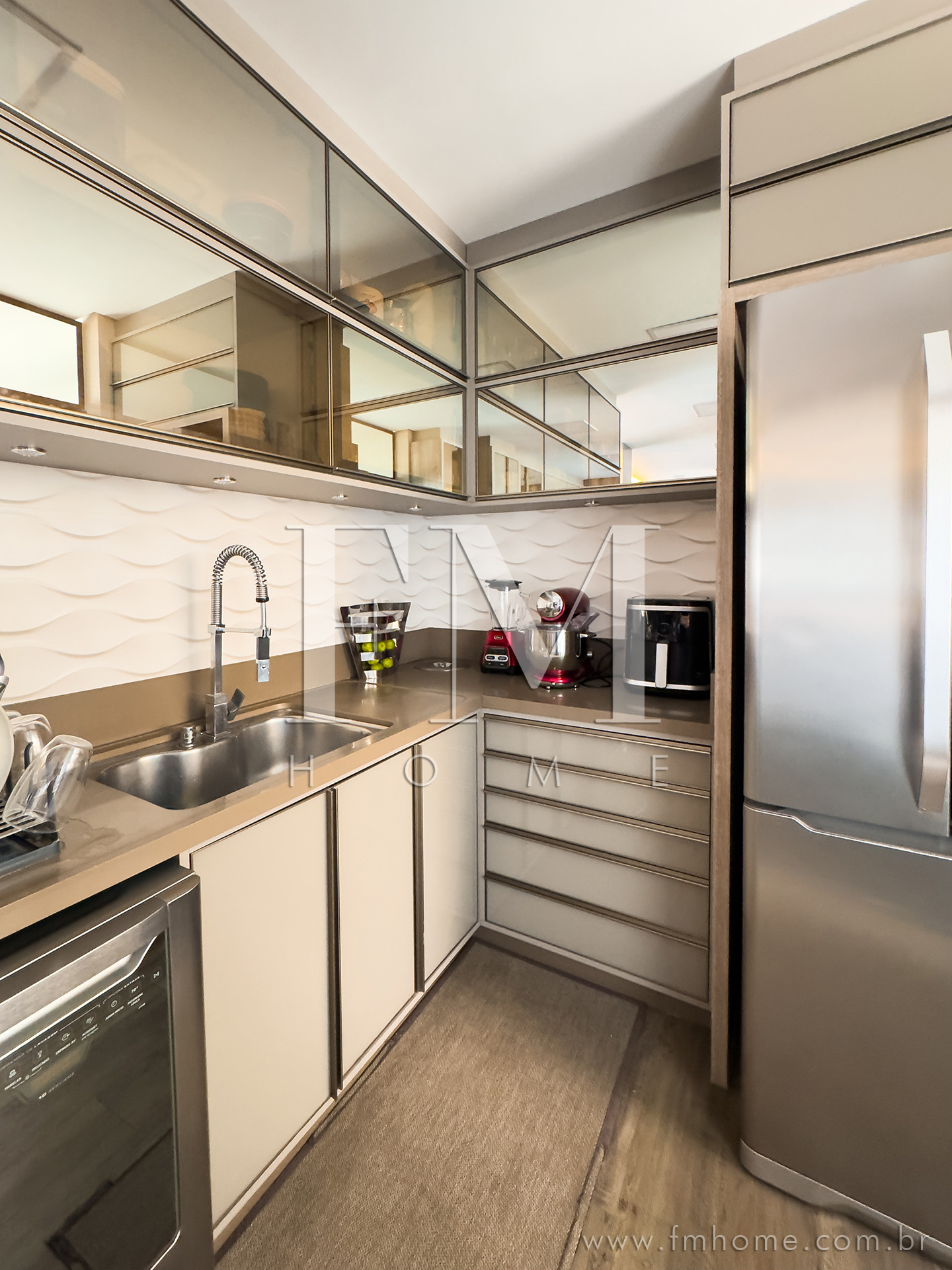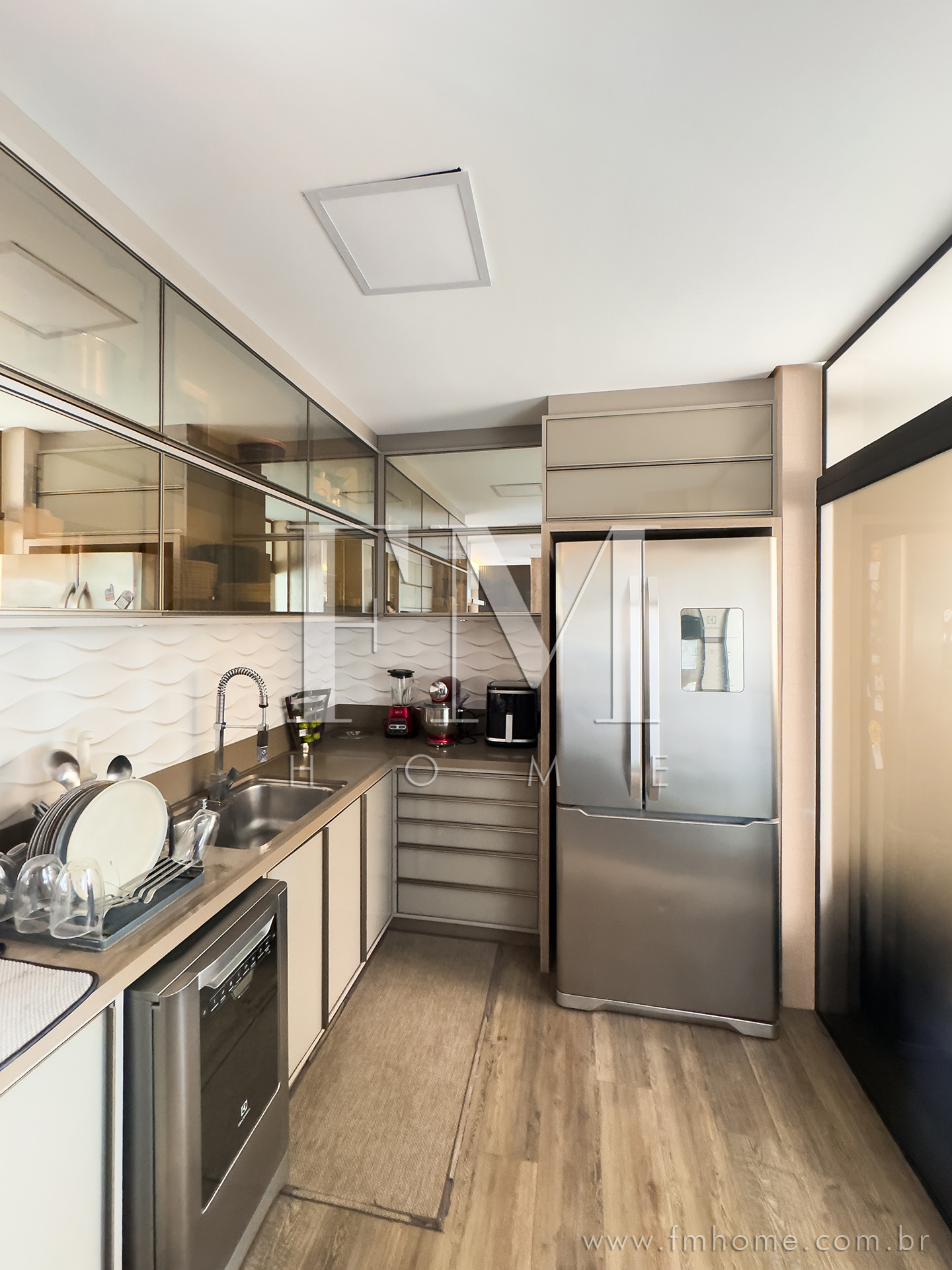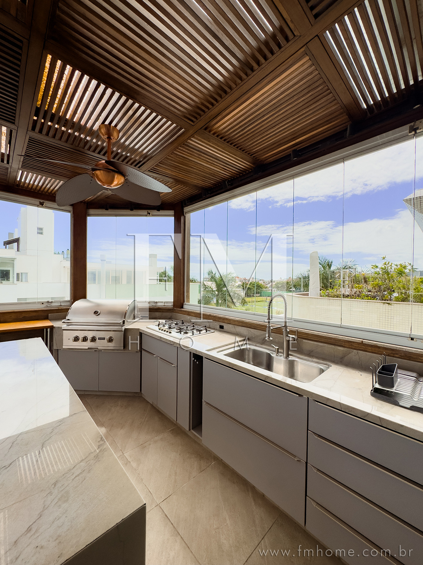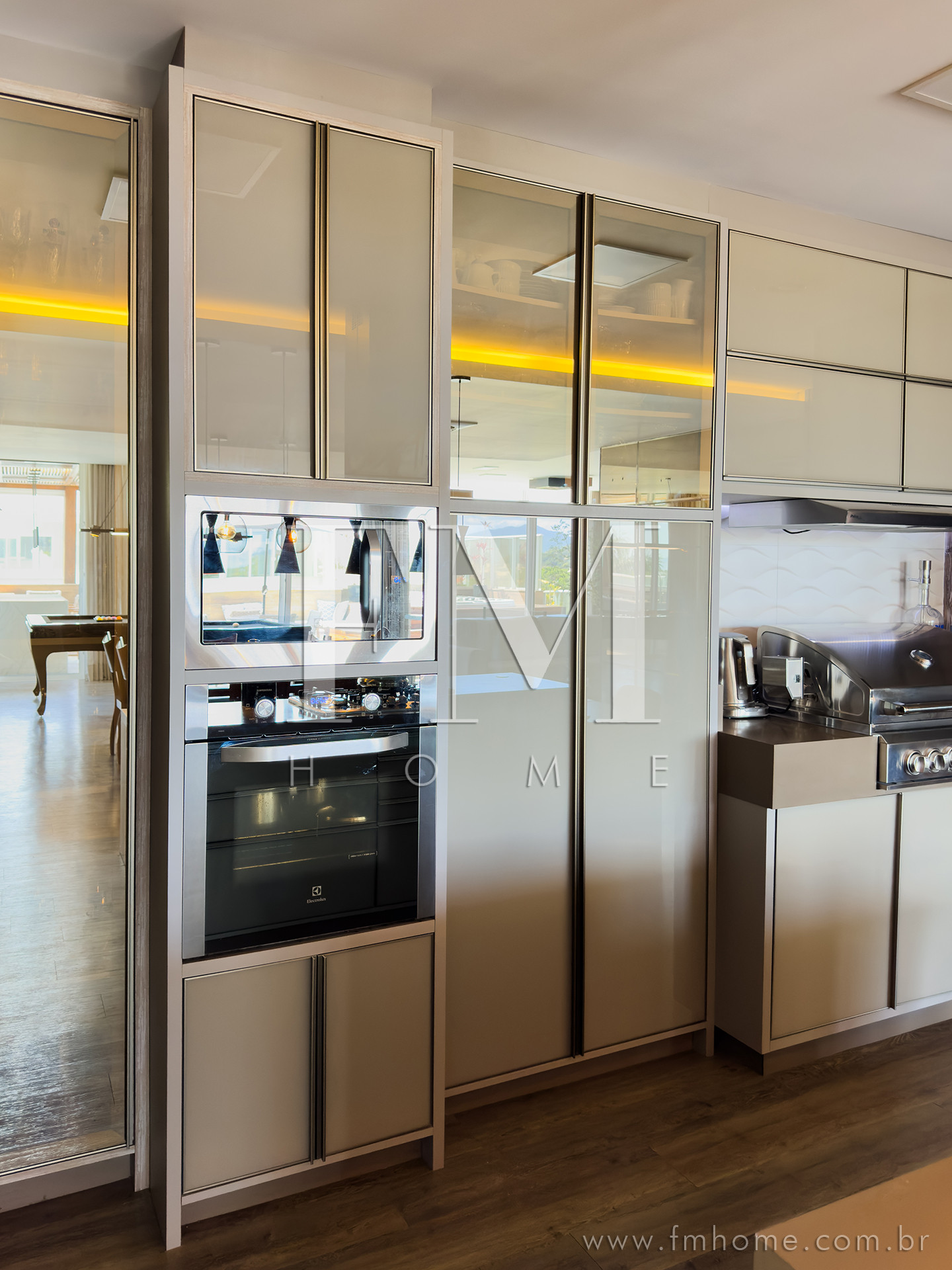 O espaço gourmet, com churrasqueira, integra-se de forma harmoniosa aos amplos ambientes climatizados — um convite para longas conversas, risadas e encontros que ficam na memória.
