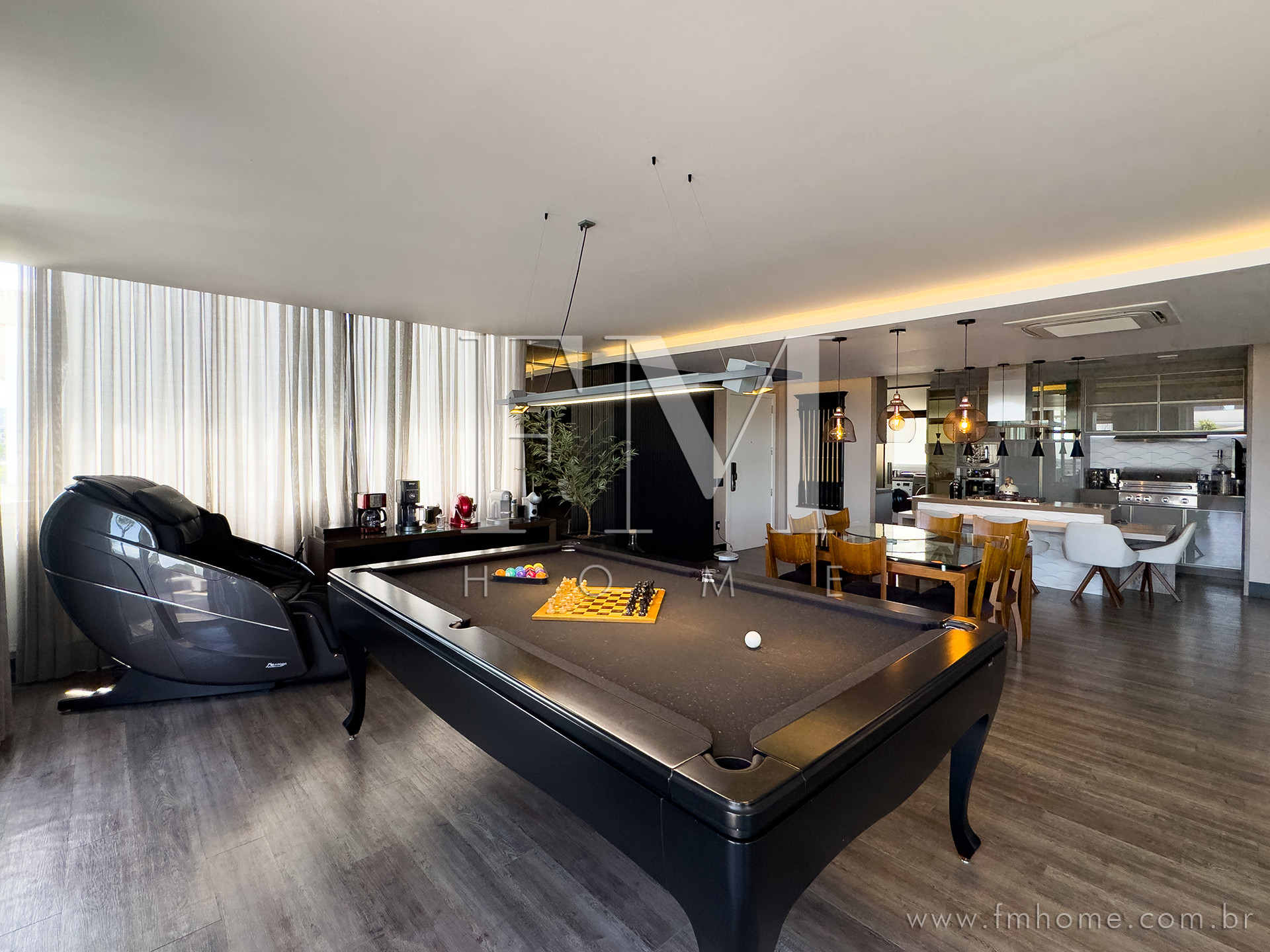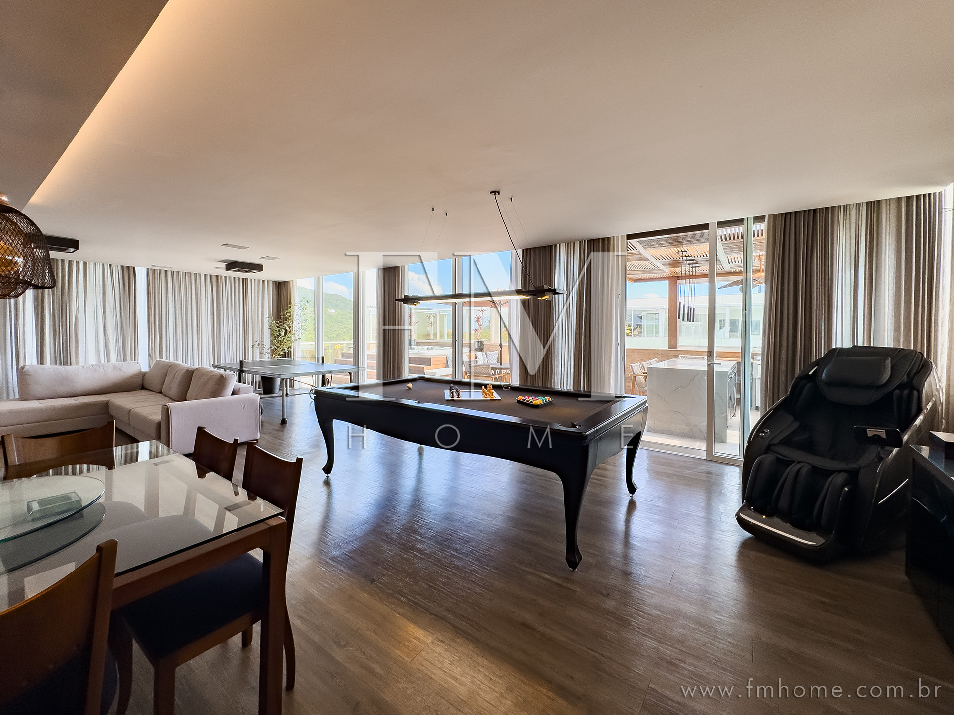 Para os momentos de lazer e descontração, a cobertura conta ainda com mesa de pingue-pongue e mesa de sinuca, garantindo diversão para todas as idades.