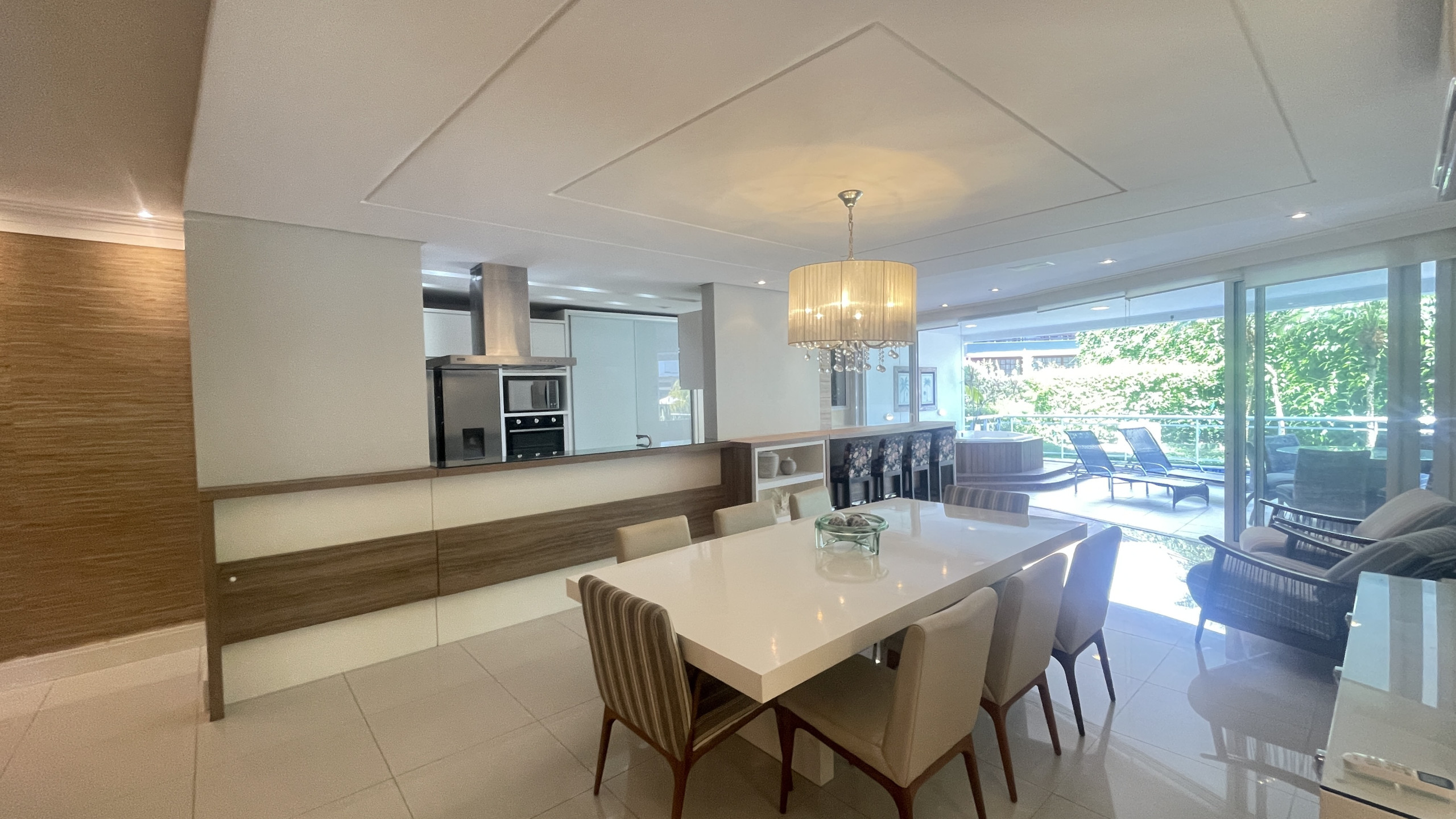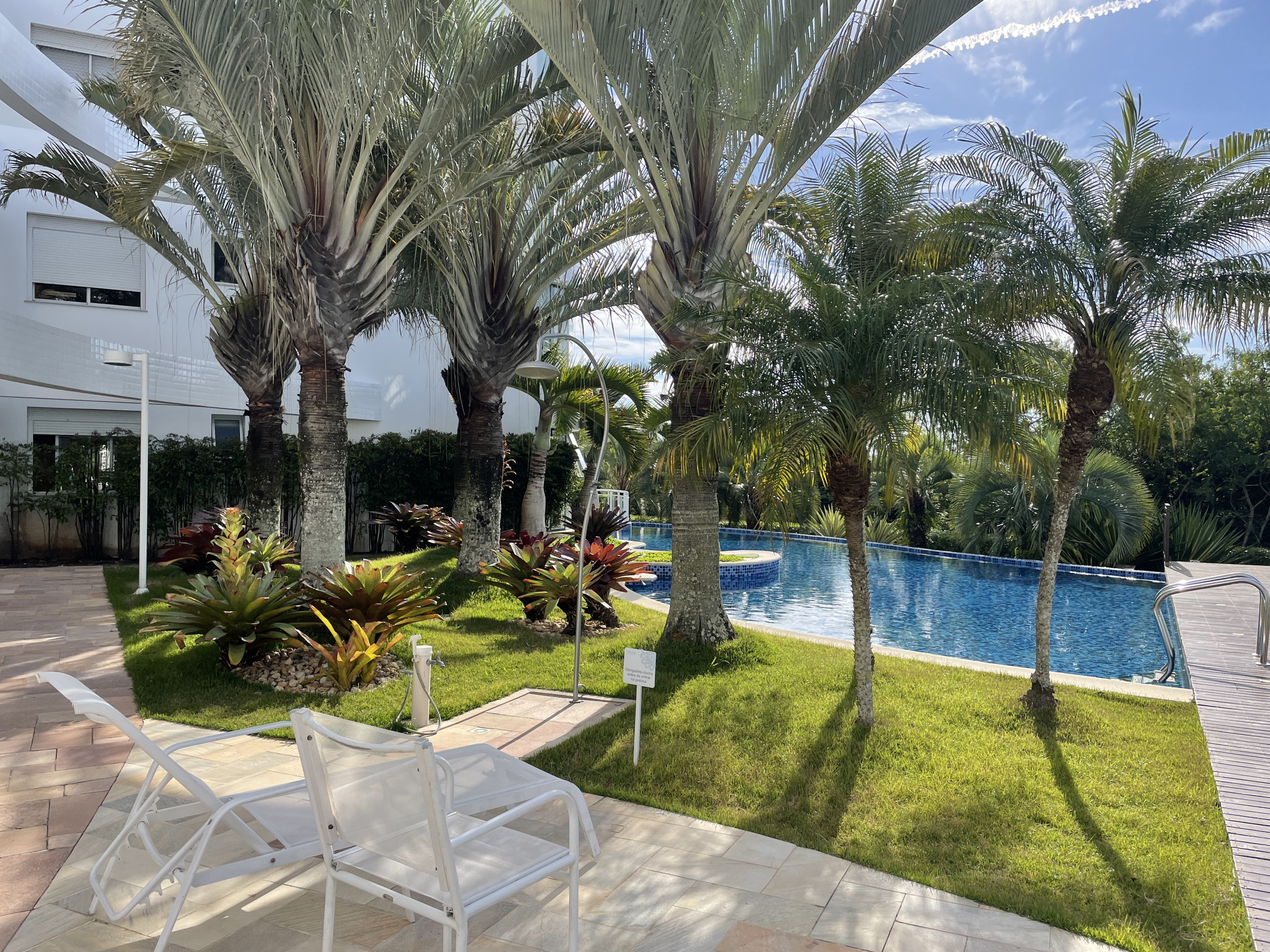 Dispõe de jardim, churrasqueira, acesso à internet (wifi), balcão, Área infantil, quadra de tênis, academia, ar-condicionado, piscina privada, garagem no mesmo edifício.