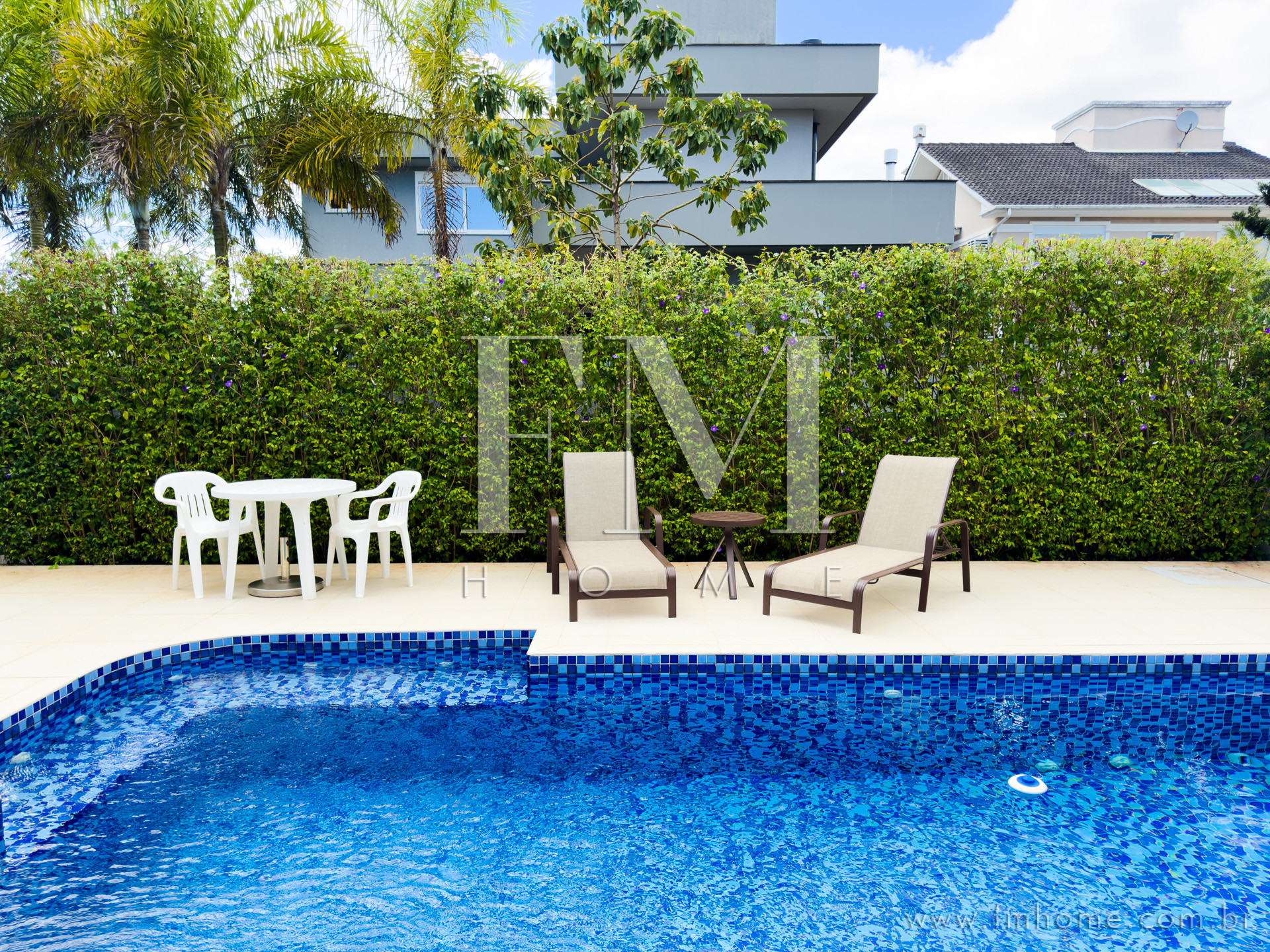 • Piscina privativa ensolarada com área externa agradável