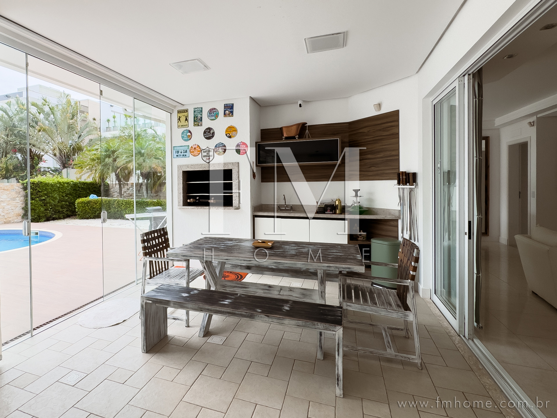 A casa em Florianópolis tem 7 quarto(s) e capacidade para 12 pessoa(s).