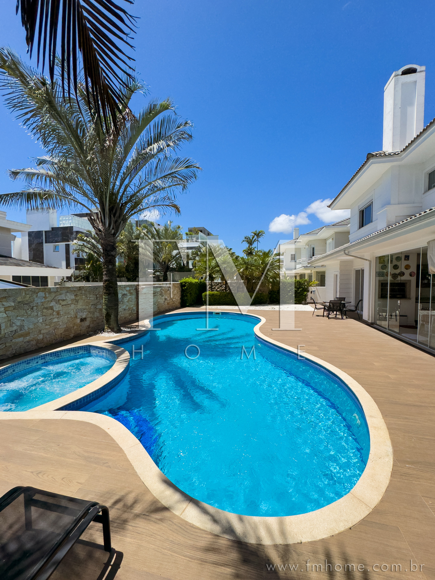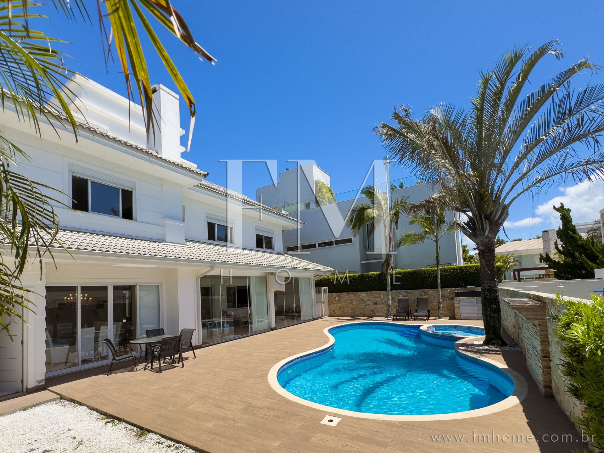 Dispõe de jardim, máquina de lavar roupas, churrasqueira, lareira, acesso à internet (wifi), balcão, spa, ar-condicionado, piscina privada, garagem, 3 Televisores.