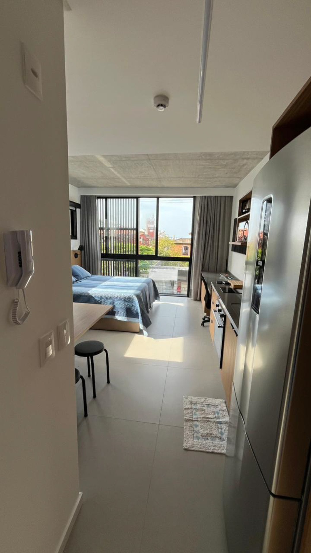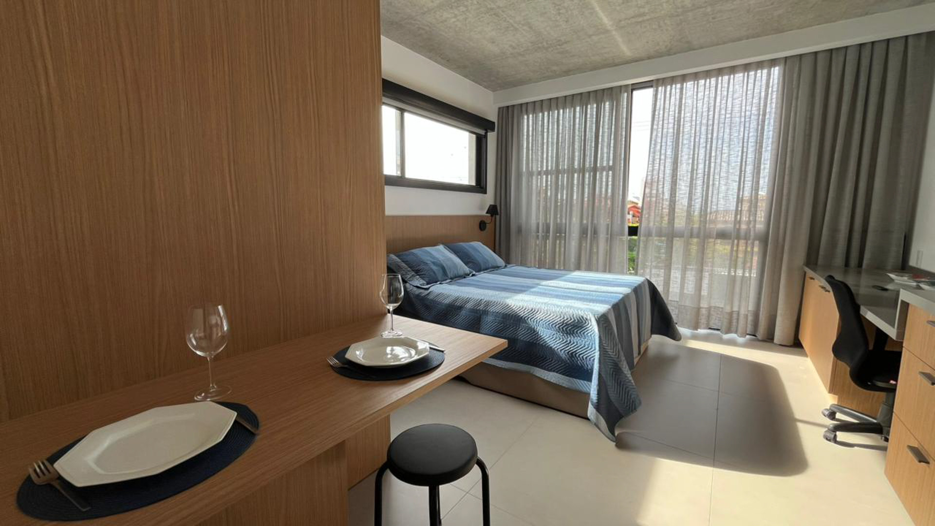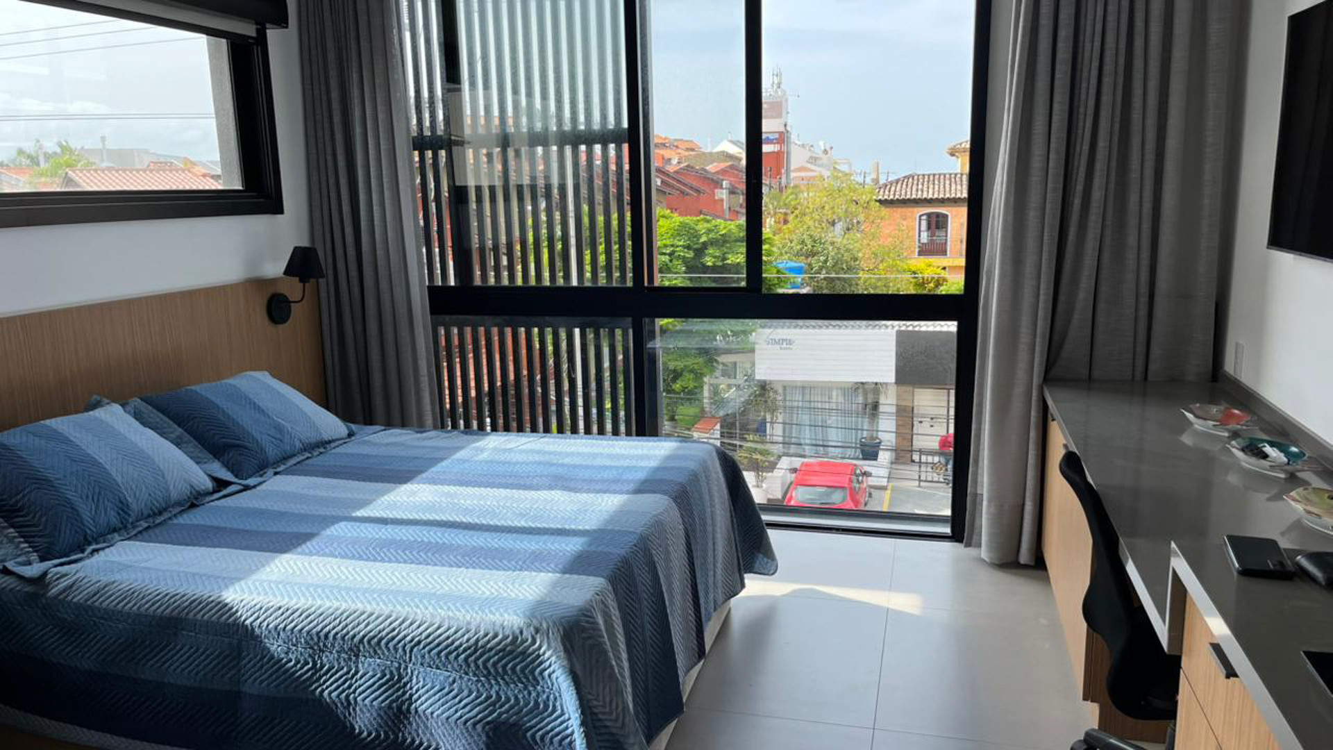 Con 35m² muy bien distribuidos, el estudio es ideal para 2 adultos y hasta 2 niños, combinando funcionalidad y confort. Cuenta con cama Queen y dos camas laterales, aire acondicionado, Wi-Fi, TV de 55 y un área cómoda para trabajar.