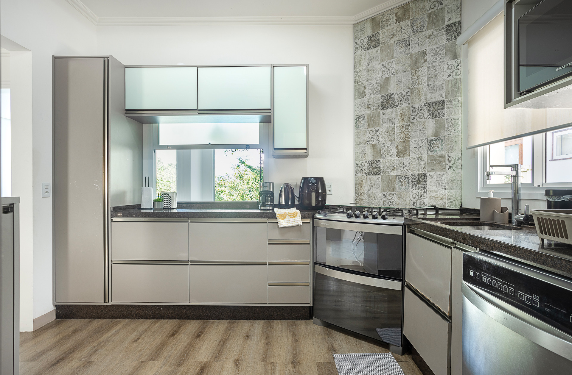 La cocina, está equipada con nevera, microondas, horno, congelador, lavavajillas, vajilla/cubertería, utensilios/cocina, cafetera, hervidor de agua y exprimidor.