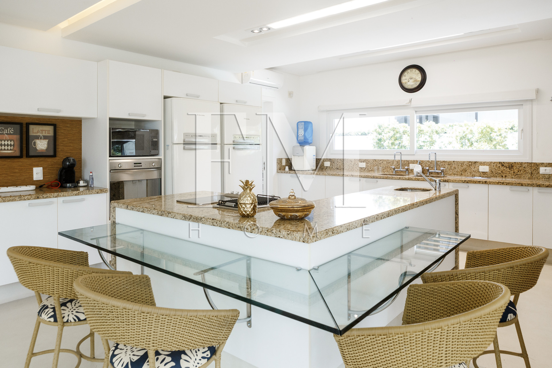 La cocina completamente equipada es un verdadero punto alto, ofreciendo electrodomésticos modernos como refrigerador, lavadora, horno, microondas, secadora, cafetera y mucho más. Con 5 televisores disponibles e internet Wi-Fi, el entretenimiento está garantizado.