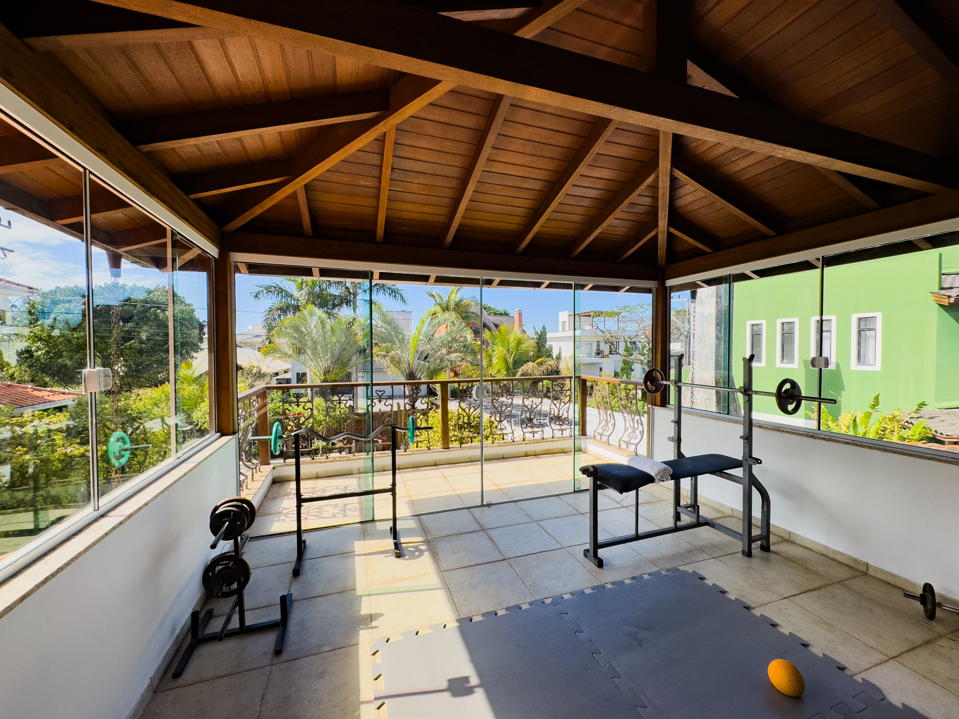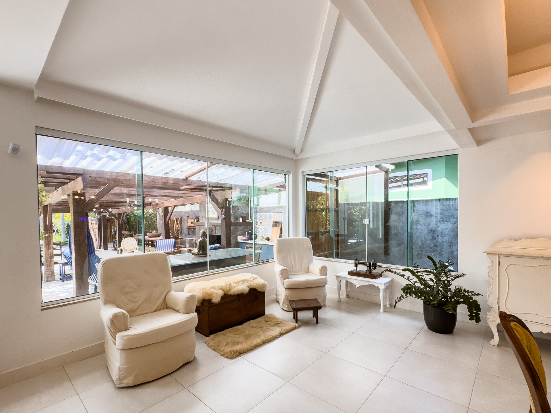 The house in Florianópolis has 5 bedrooms and has capacity for 12 people.